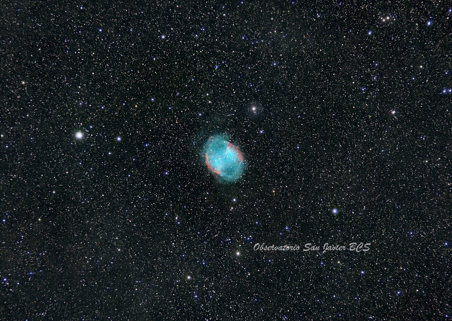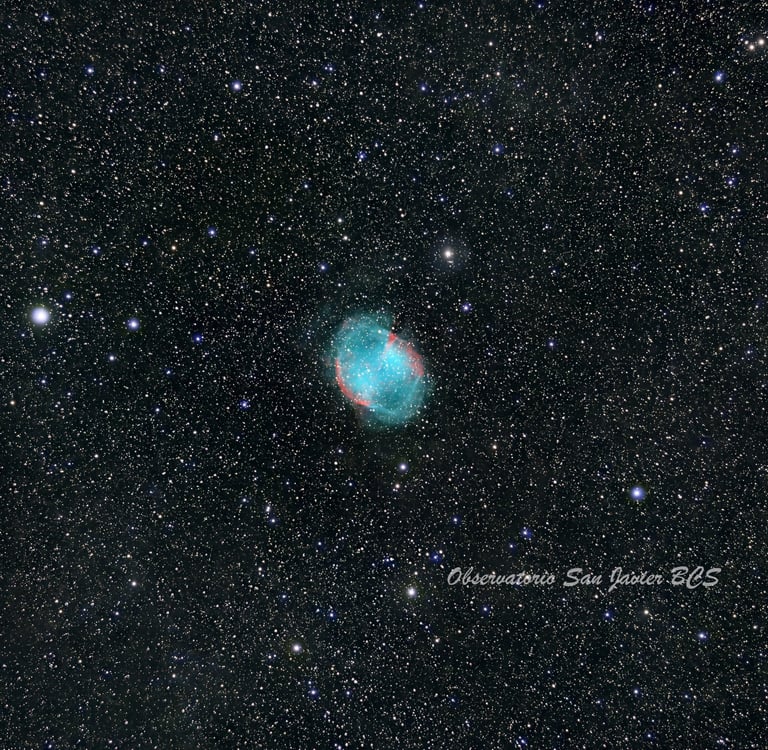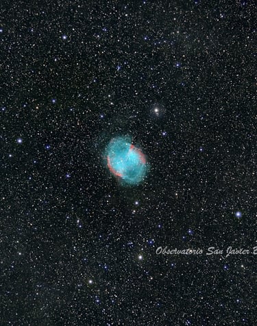 La Nebulosa Mancuerna, M27, es una nebulosa planetaria. Está formada por la nebulosidad que rodea a una enana blanca y se encuentra en la constelación de Vulpecula, a unos 1360 años luz de la Tierra. La principal diferencia entre una nebulosa planetaria y una nebulosa galáctica es que la nebulosa planetaria es una capa de gas brillante emitida por una estrella moribunda, mientras que una nebulosa galáctica es una nube mucho más grande de gas y polvo que puede existir en toda una galaxia.