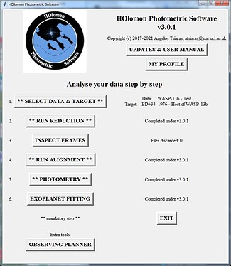 LÚPULO (El software fotométrico HOlomon es un software intuitivo basado en Python para astrónomos aficionados y profesionales del proyecto ExoClock, que analiza datos de tránsitos de exoplanetas . Automatiza los pasos desde la reducción de datos ( calibración y alineación ) hasta la fotometría ( extracción de curvas de luz ) y el modelado , lo que facilita el monitoreo de efemérides de exoplanetas para misiones como ARIEL . Simplifica tareas complejas con guías paso a paso, haciéndolo accesible en Windows, Mac y Linux para que cualquier persona con un telescopio pequeño pueda contribuir a la astronomía real.
