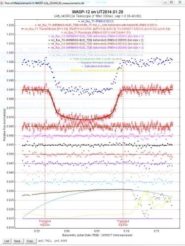 El Observatorio de San Javier puede observar y crear curvas de luz para estrellas variables mediante un proceso de dos partes. La primera parte consiste en la recopilación de datos con nuestro telescopio refractor fijo guiado para adquirir imágenes FITS mediante el secuenciador avanzado NINA y el complemento Exoplanet/Variable Star Plug-in. La segunda parte consiste en el procesamiento de los archivos de imagen para crear una curva de luz para su envío.