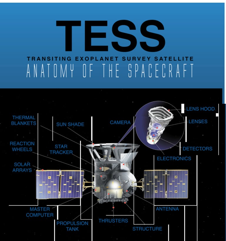 TESS se lanzó el 18 de abril de 2018 a bordo del cohete Falcon 9 de SpaceX y ahora orbita la Tierra al doble de velocidad que la Luna. Durante los próximos dos años, este asombroso nuevo satélite observará todo el cielo, dividiéndolo en 26 sectores diferentes. Cada sector es observado por cuatro cámaras extremadamente potentes que, en conjunto, cubren una porción de cielo de 24 por 96 grados. Puede consultar la orientación exacta del satélite en el enlace. Las estrellas en cada uno de estos sectores serán monitoreadas durante al menos 27 días, registrando su brillo cada 2 minutos.