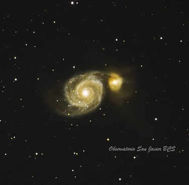 La Galaxia del Remolino, o M51a, es una galaxia de gran diseño que interactúa con una galaxia compañera, designada como M51b. Ambas se encuentran a unos 24 millones de años luz de la Tierra y han sido estudiadas exhaustivamente para comprender cómo interactúan las galaxias entre sí.