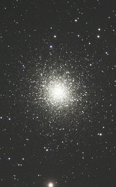 M13, el Cúmulo Globular de Hércules, es un cúmulo de más de 300.000 estrellas a más de 24.000 años luz de distancia. Se estima que su antigüedad es casi tan grande como la de la Vía Láctea, con 11.650 millones de años. Nuestro sistema solar tiene unos 4.600 millones de años.