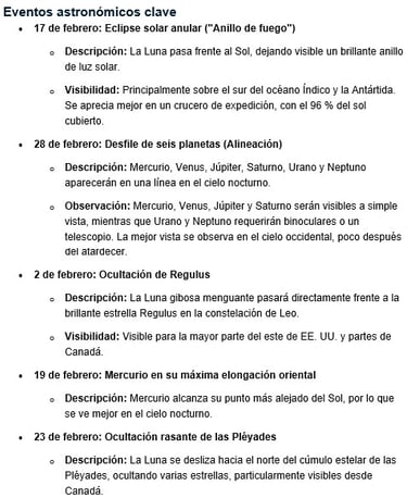 Eventos interesantes de febrero de 2026