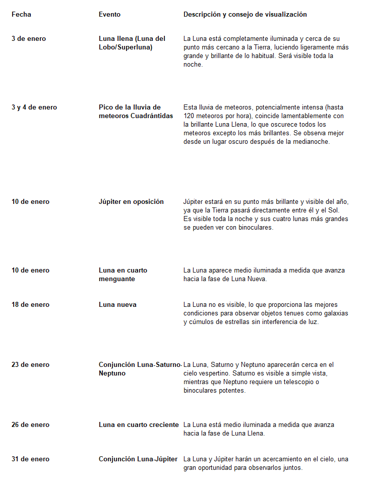 Calendario de eventos de enero de 2026